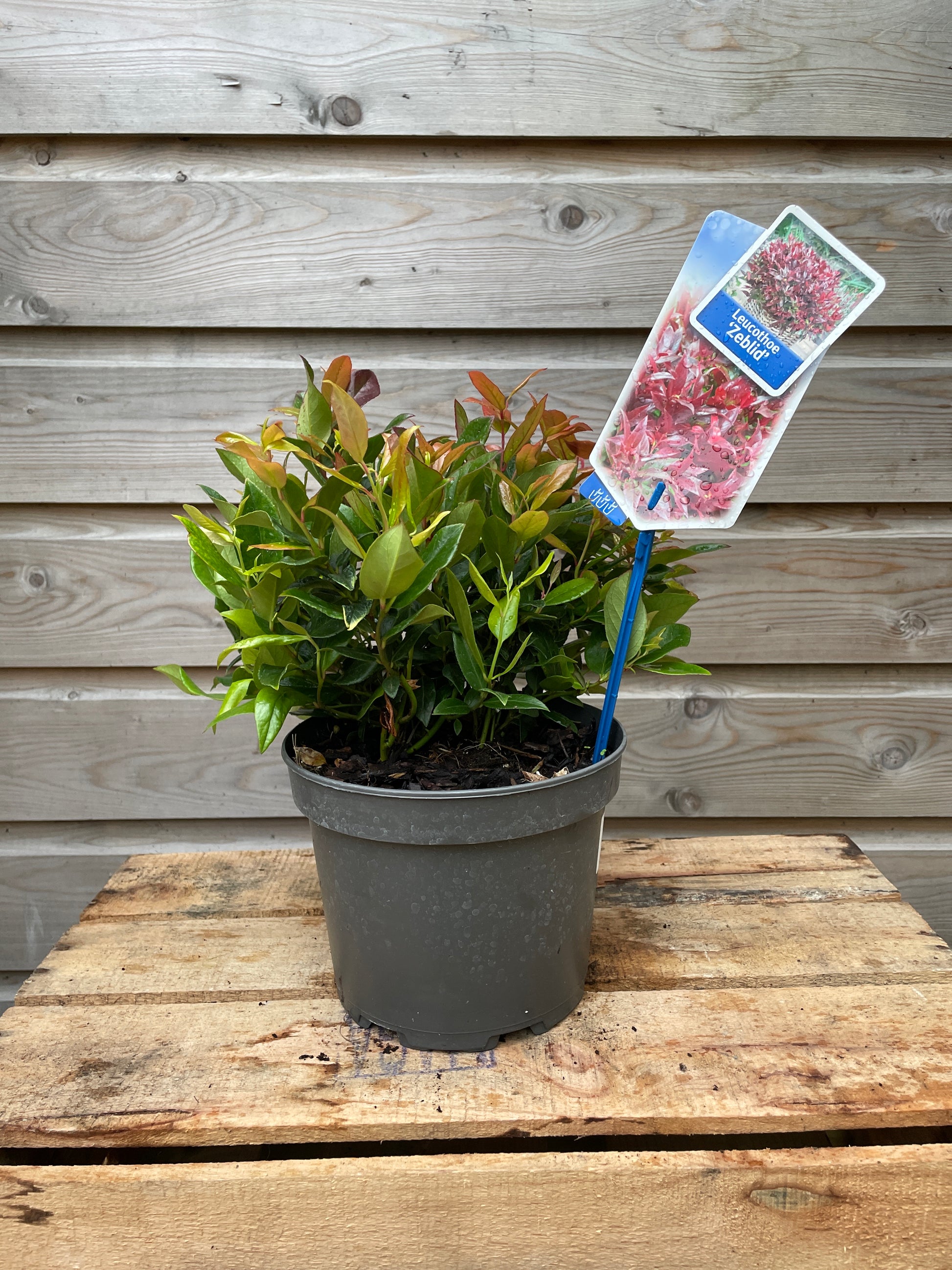 Leucothoe ‘Zeblid’ is a compact, evergreen shrub admired for its colourful foliage. New leaves emerge bright red, maturing to deep green through summer, before turning rich shades of bronze and crimson in autumn and winter. Its arching habit and year-round interest make it a versatile choice for borders, woodland gardens, or containers. Small, creamy-white flowers appear in spring, adding an extra touch of charm.