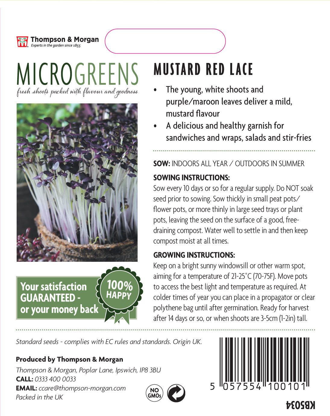 The young, white shoots and purple/maroon leaves deliver a mild, mustard flavour. A delicious and healthy garnish for sandwiches and wraps, salads and stir-fries.