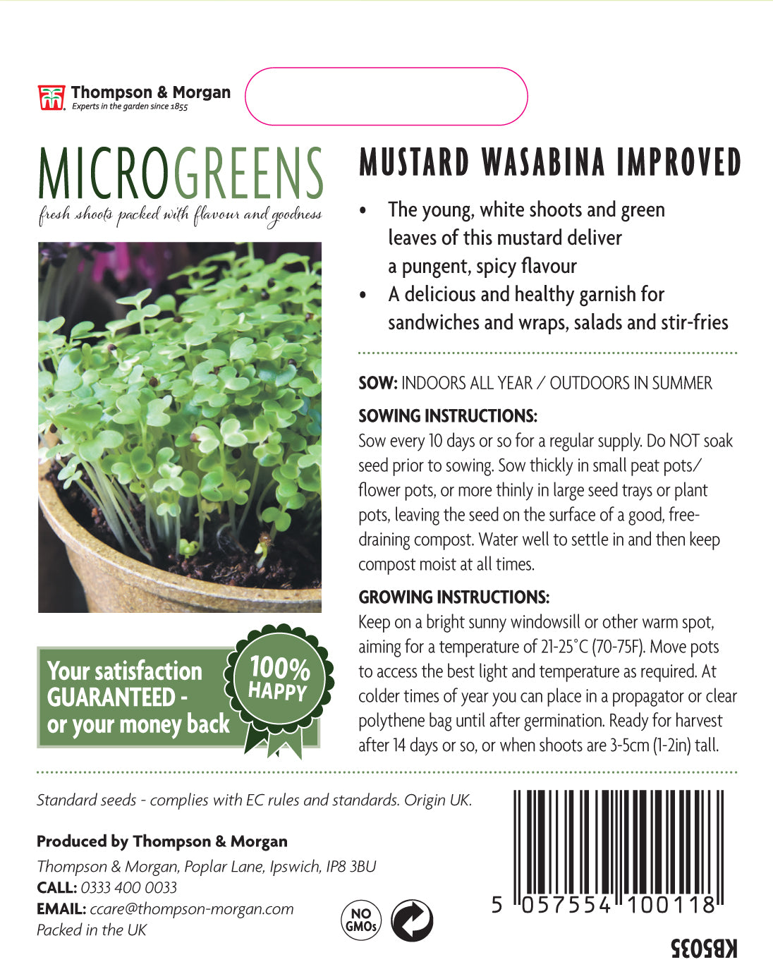 The young, white shoots and green leaves of this mustard deliver a pungent, spicy flavour. A delicious and healthy garnish for sandwiches and wraps, salads and stir-fries