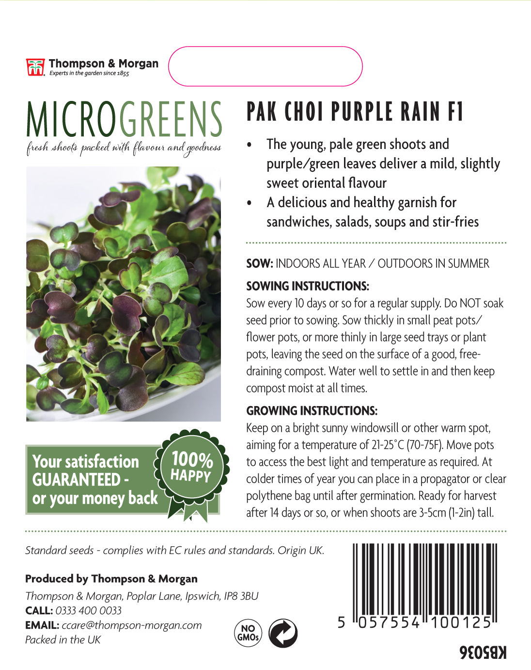 The young, pale green shoots and purple/green leaves deliver a mild, slightly sweet oriental flavour. A delicious and healthy garnish for sandwiches, salads, soups and stir-fries.