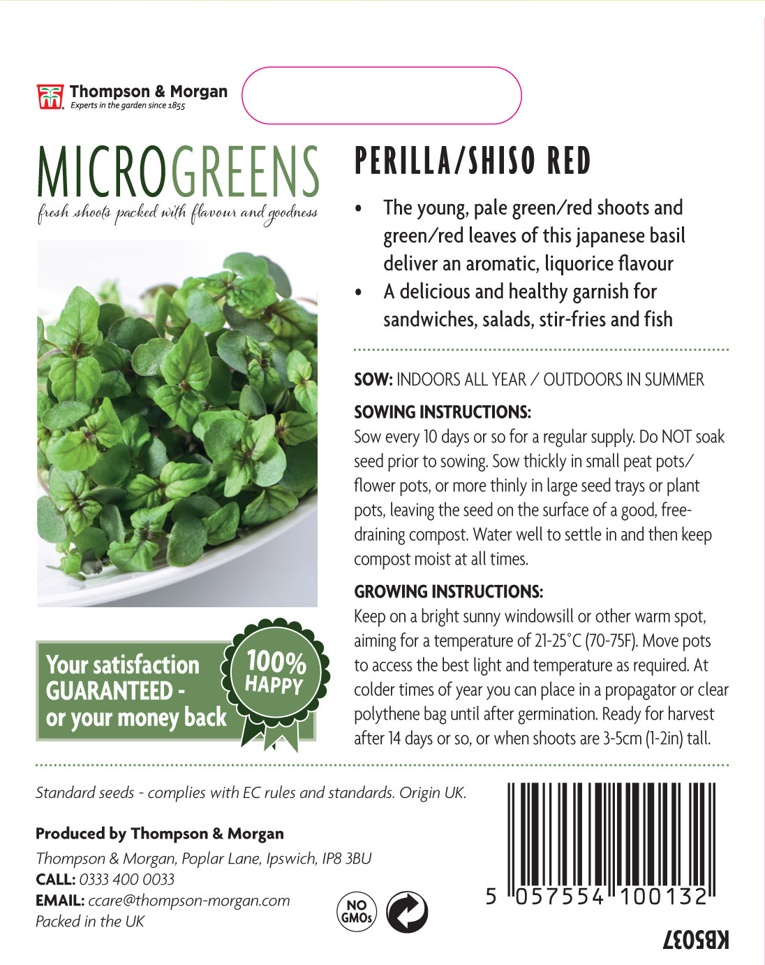 The young, pale green/red shoots and green/red leaves of this japanese basil deliver an aromatic, liquorice flavour. A delicious and healthy garnish for sandwiches, salads, stir-fries and fish.