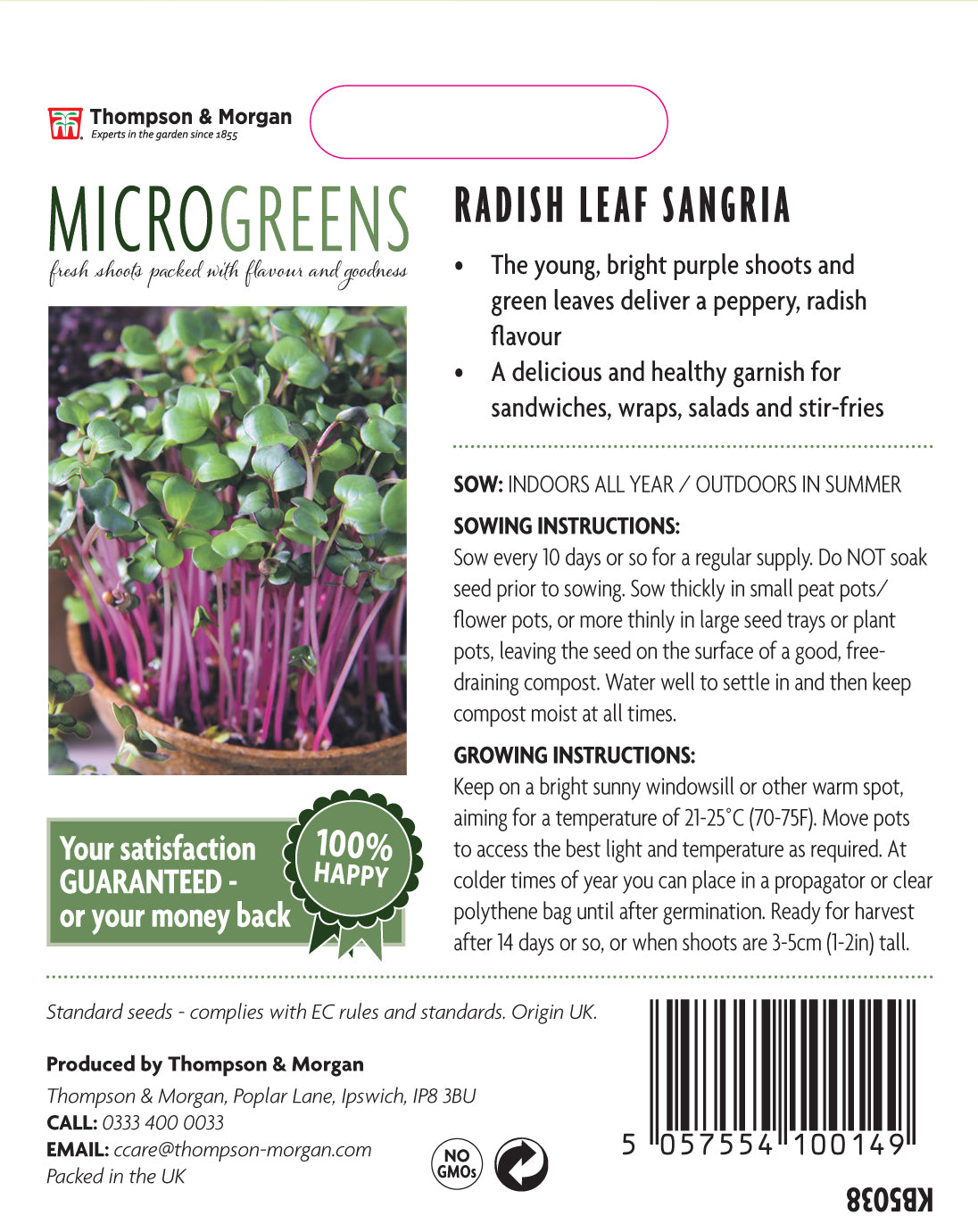 The young, bright purple shoots and green leaves deliver a peppery, radish flavour. A delicious and healthy garnish for sandwiches, wraps, salads and stir-fries.