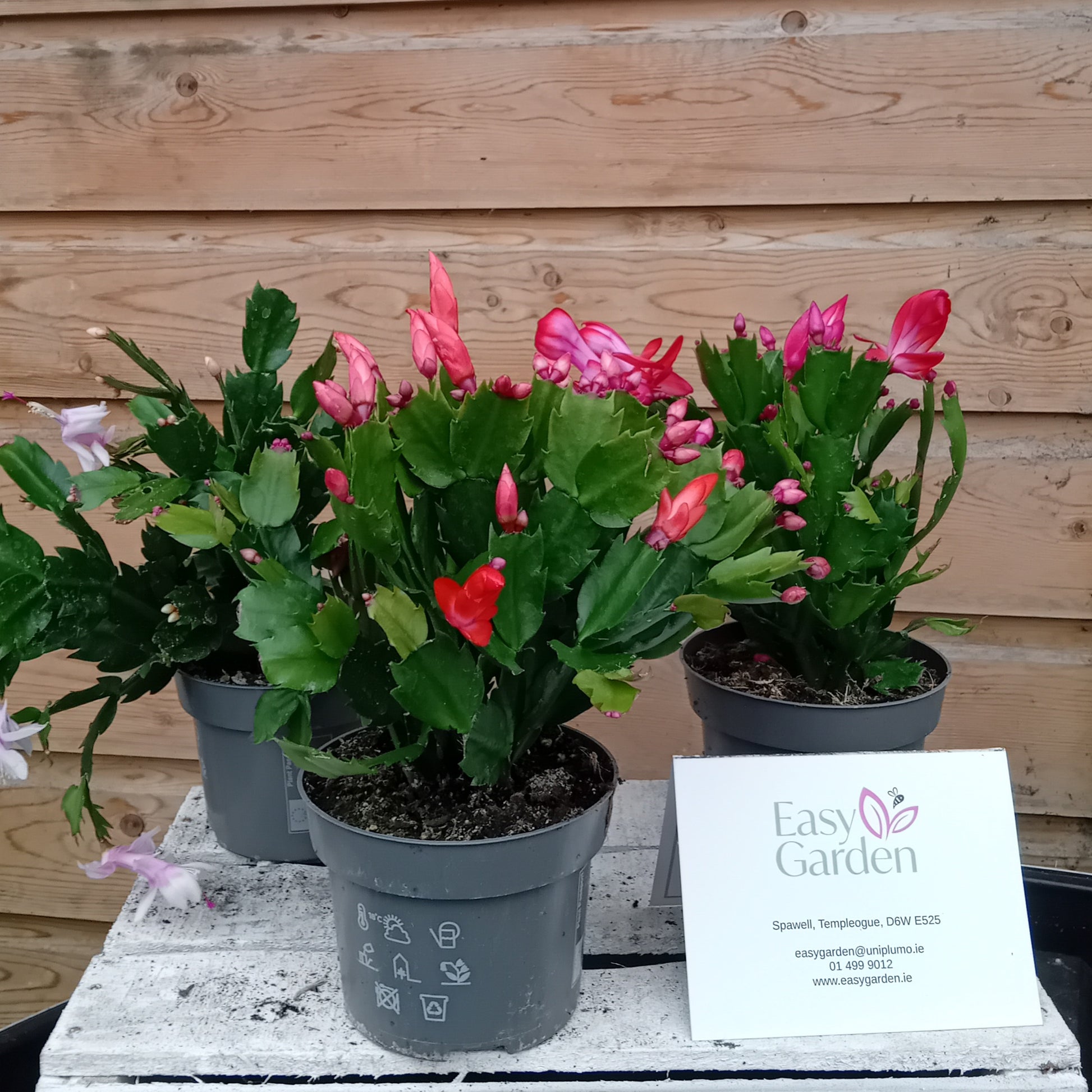 Schlumbergera or Christmas Cactus. This festive houseplant is loved for its flat, segmented stems and stunning, brightly colored flowers that bloom in late autumn to winter, adding cheer to the darker months. Easy to care for and long-lived, Schlumbergera is a delightful choice for homes, offices, or seasonal displays.