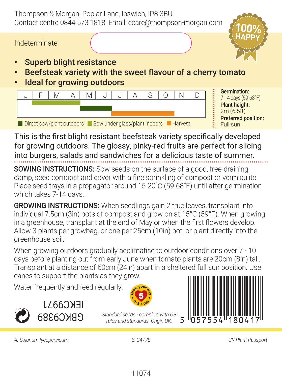 This is the first blight resistant beefsteak variety specifically developed for growing outdoors. The glossy, pinky-red fruits are perfect for slicing into burgers, salads and sandwiches for a delicious taste of summer.
