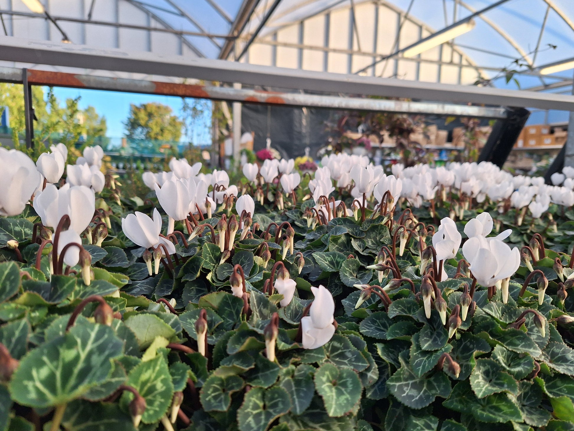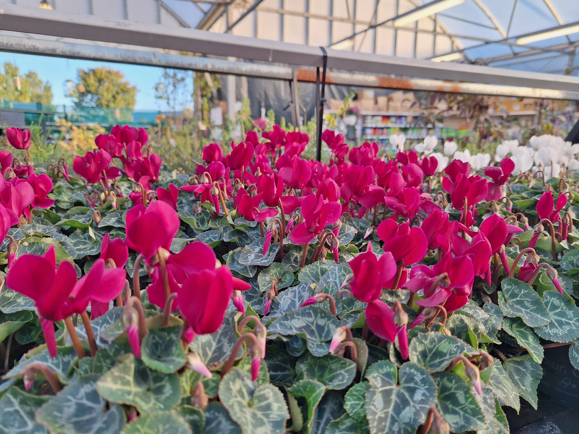 Add a splash of color to your outdoor spaces with mini cyclamen, a charming and hardy plant perfect for the cooler months. These petite beauties boast vibrant blooms in shades of pink, red, white, and purple, paired with delicate, heart-shaped foliage often marbled with silver. Ideal for brightening up garden beds, window boxes, or patio containers, their compact size and long-lasting flowers make them a versatile choice for any setting.